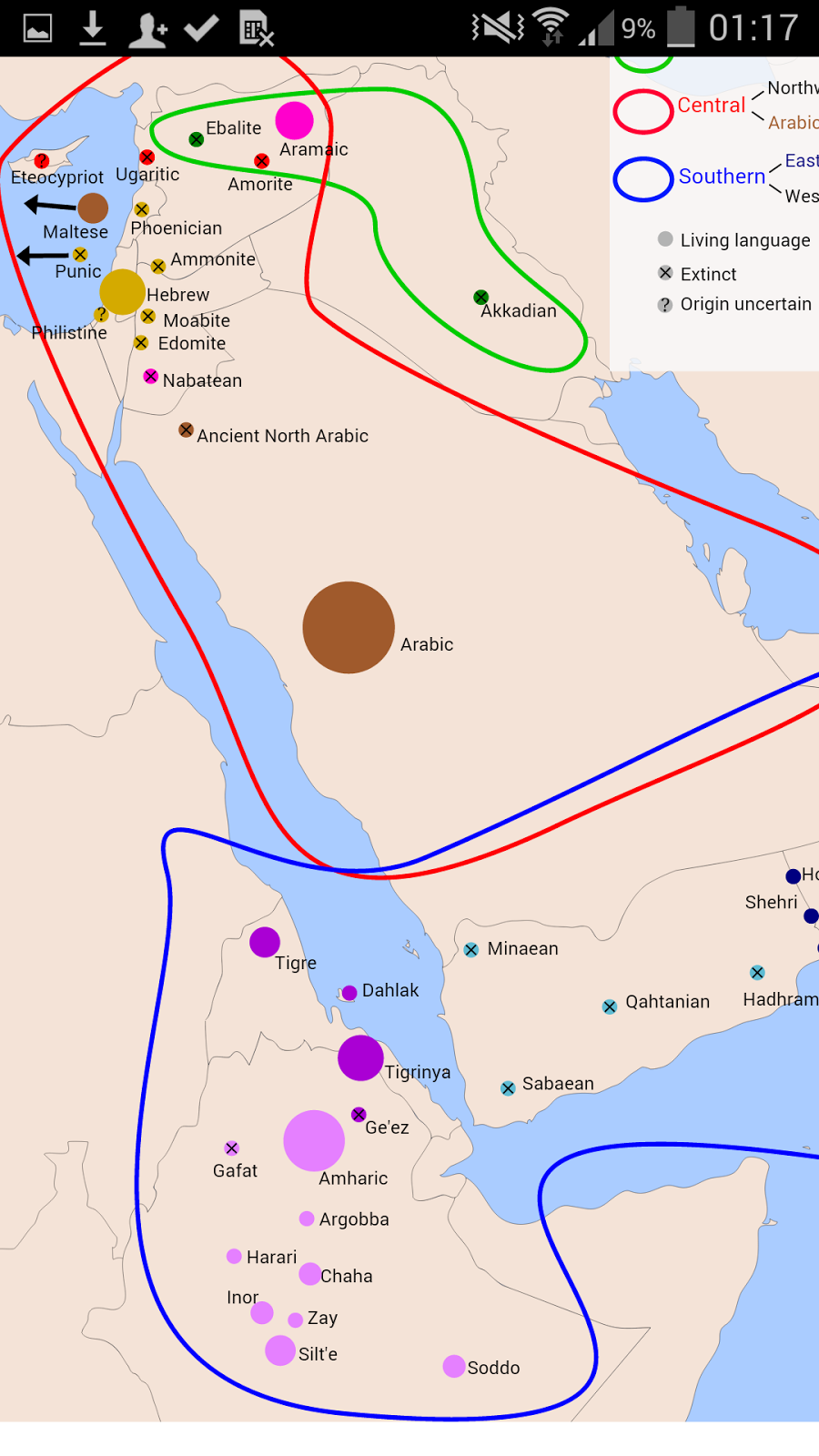 Guèze (Royaume d'Aksoum et Empire éthiopien, utilisé comme langue liturgique pour l'église orthodoxe érythréenne et éthiopienne);